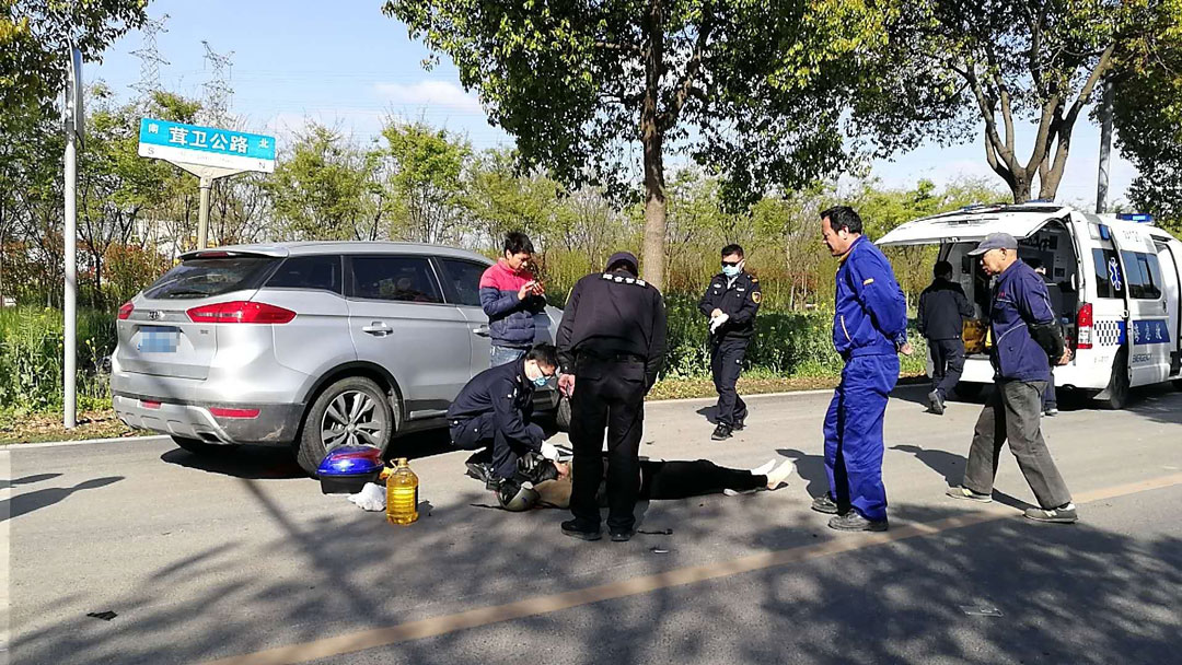 4月5日上午9點(diǎn)左右,宗保公司駐金山衛(wèi)市容項(xiàng)目隊(duì)員張建華、賈鐵雕在上班途經(jīng)茸衛(wèi)公路查梅路交叉口時(shí),目睹了一起車禍發(fā)生——一輛機(jī)動(dòng)車與一輛電瓶車相撞?,F(xiàn)場(chǎng)電瓶車的零碎部件散落在地上,電瓶車主受傷躺在路邊不能起身;機(jī)動(dòng)車駕駛員一時(shí)間嚇得六神無主,不知所措。