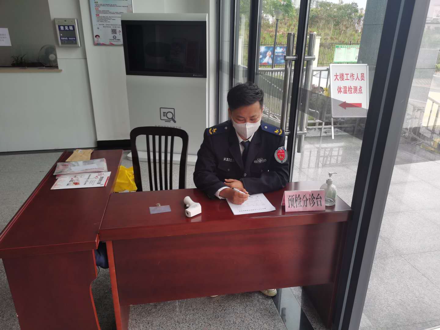 自1月28日以來,宗保公司駐橫沙鄉(xiāng)市容項目的保安隊員們按照鄉(xiāng)政府新冠肺炎疫情防控工作領導小組的安排部署,與鄉(xiāng)社區(qū)衛(wèi)生服務中心的醫(yī)務人員一起風雨無阻地堅守在中心大門口,牢牢筑起第一道防線。隊員們按照要求,用自己的忠誠和擔當,以飽滿的工作狀態(tài),嚴格落實疫情防控各項工作措施,堅決做到逢車必檢、逐個測溫、逐個篩查,切實把人民群眾的身體健康和生命安全放在首位。