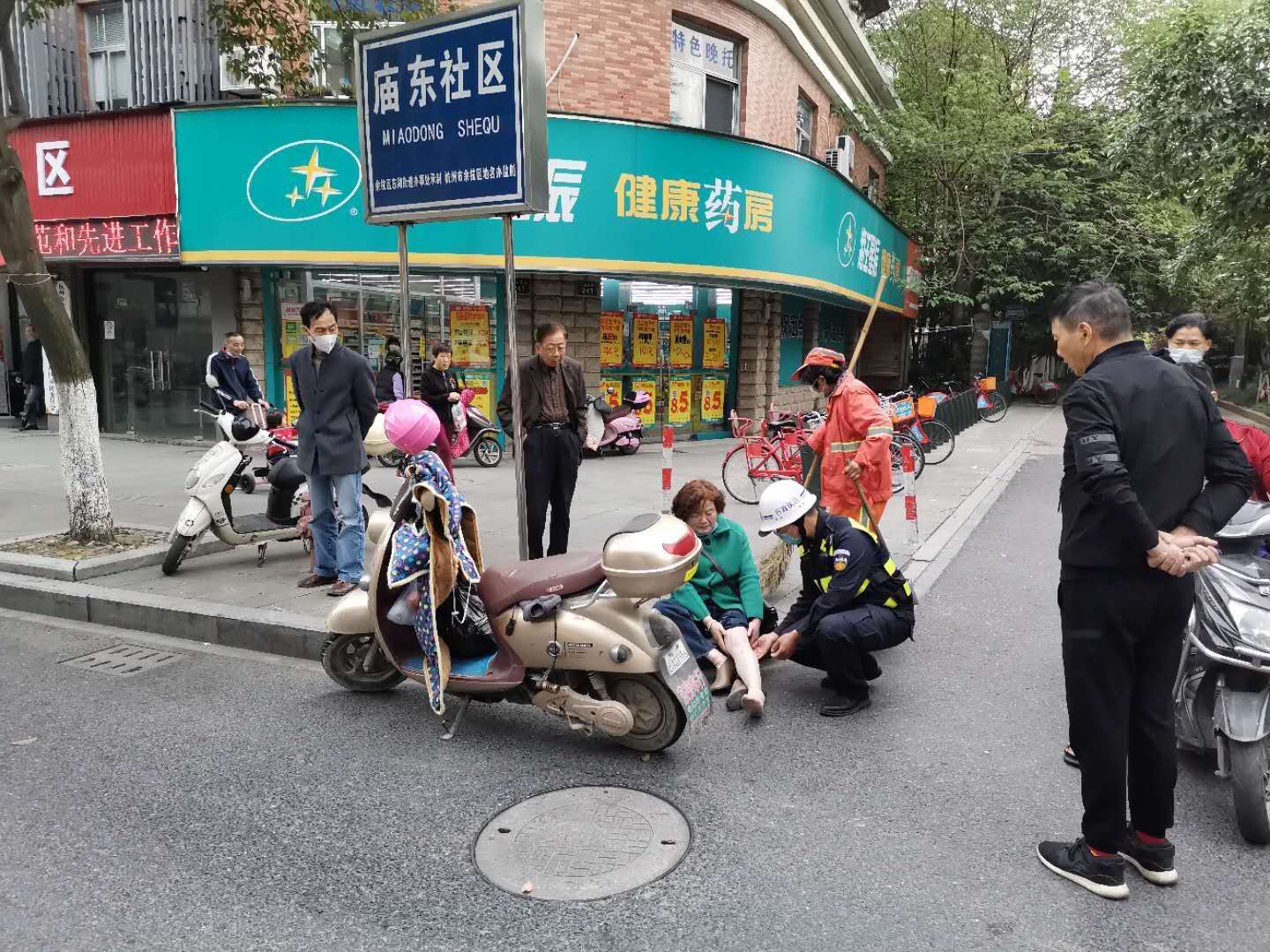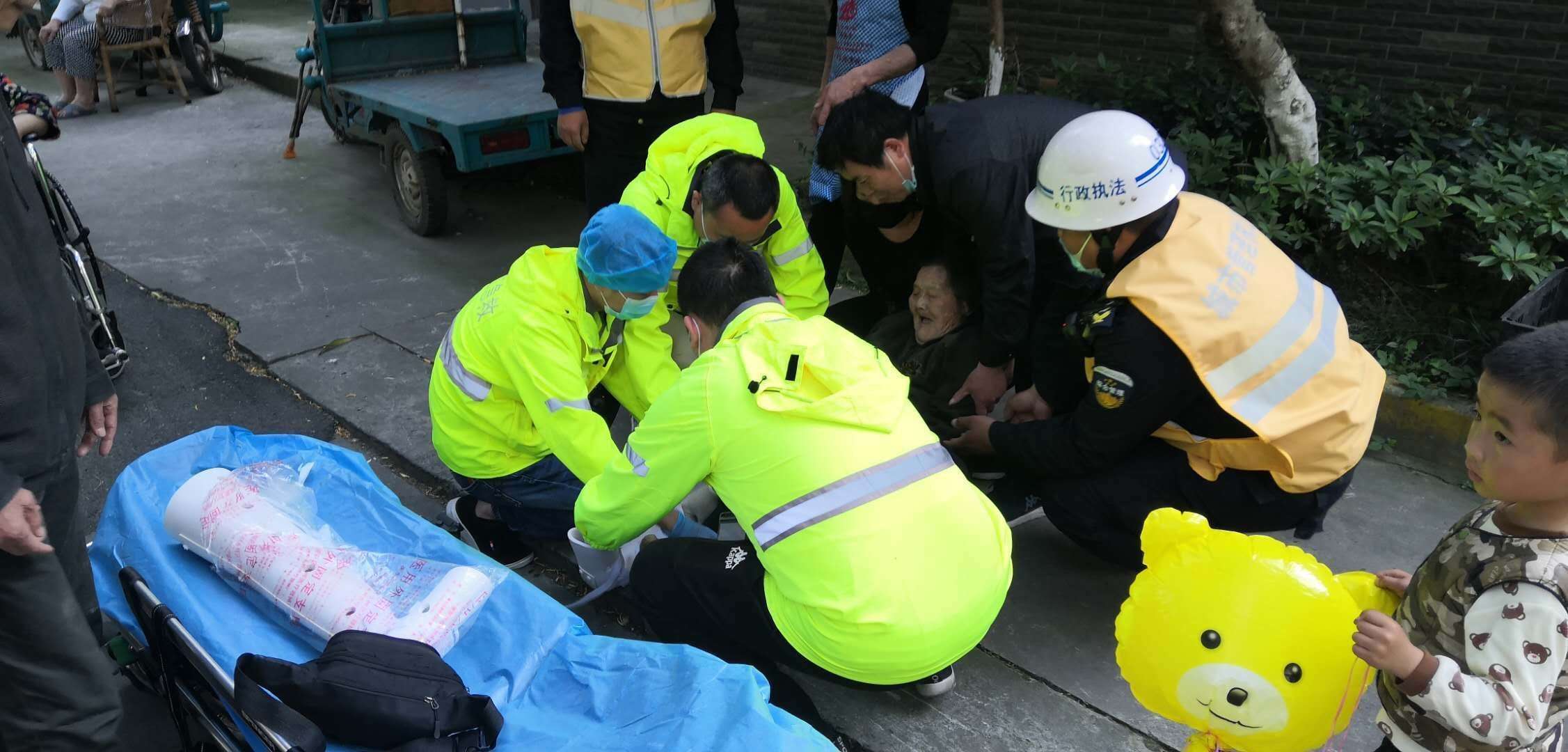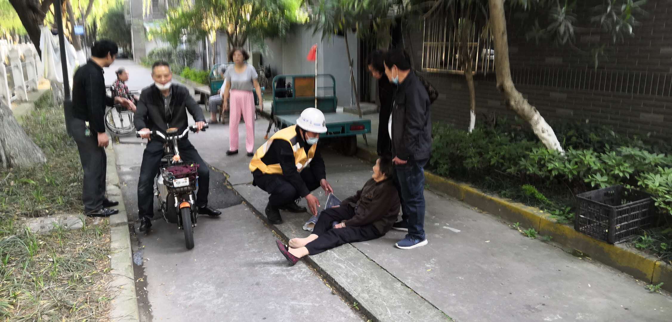 4月29日16:30,臨平街道九曲營路與梅堰路口,一位外出遛彎的老太太突然摔倒在地,腿部傷勢過重?zé)o法起身。民泰公司駐臨平市容項(xiàng)目隊(duì)員張艮振正好巡邏至此,立馬跑過去查看老人傷勢,安慰老人情緒,并撥打120急救電話。
