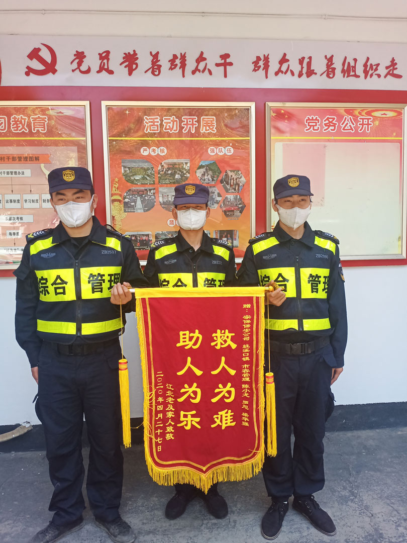 4月29日,一位老先生拿著一面寫有“救人危難,助人為樂”的錦旗,送到宗保公司駐黃山市休寧縣溪口鎮(zhèn)市容項(xiàng)目,并連聲道謝“謝謝你們,謝謝你們,總算找到你們了,多虧你們幫忙,救了我女兒。”