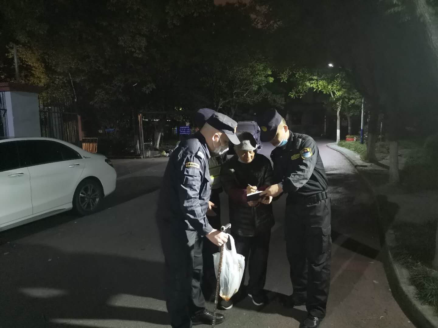 事情要回到當天1:43分,宗保公司駐金橋派出所輔警項目夜班隊員接到110值班室電話,稱金新路與浙橋路有一位老人迷路。