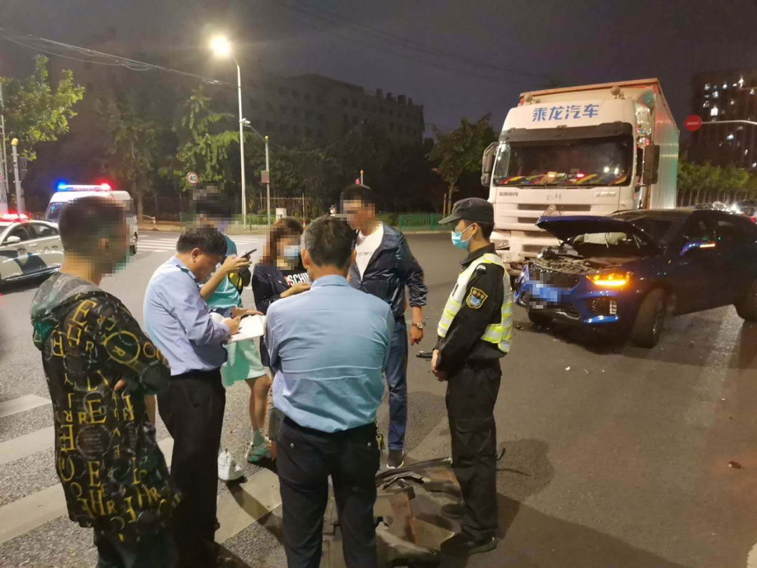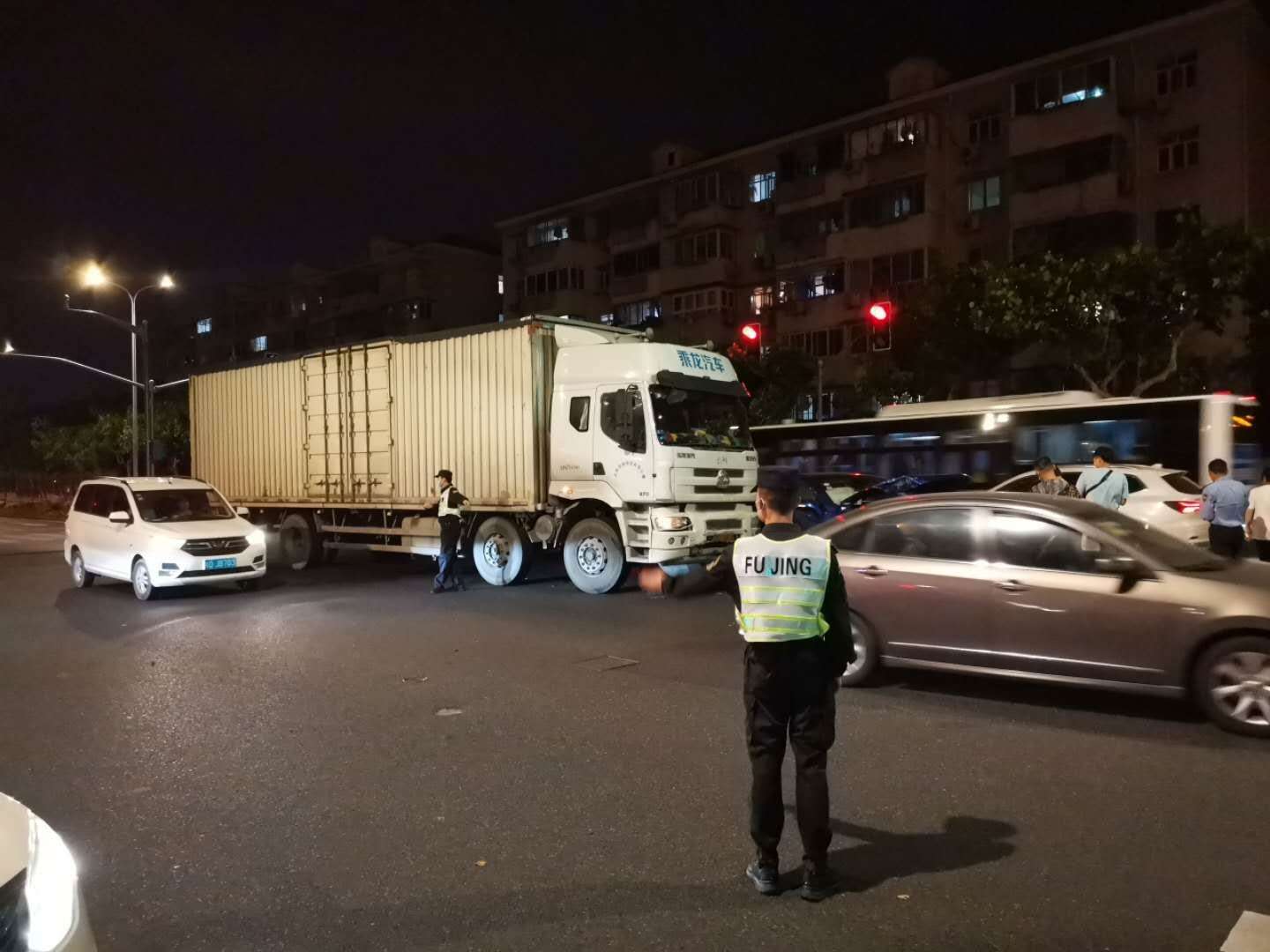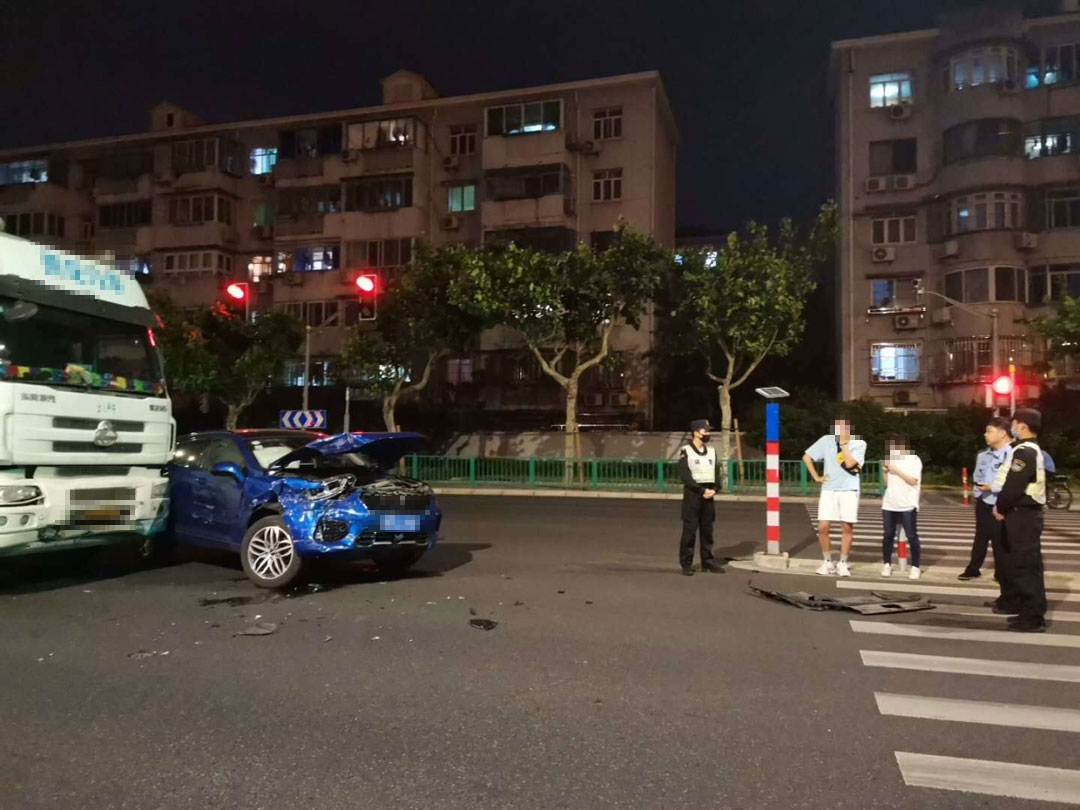 5月20日20:40,浦東新區(qū)金橋鎮(zhèn)巨峰路金京路交叉口發(fā)生一起大貨車與小汽車相撞的交通事故。宗保公司駐金橋派出所輔警項(xiàng)目隊(duì)員范沖、黃祥宇剛好巡邏至此,目睹了事故的全過程。