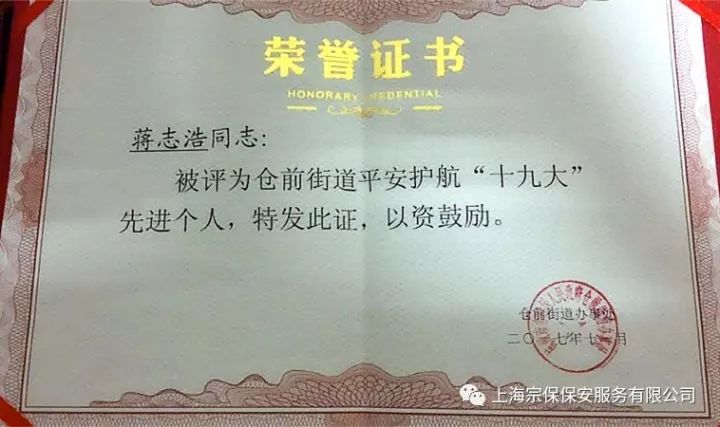 杭州倉前輔警項(xiàng)目隊(duì)員蔣志浩、張小龍、何升杰三人在此次“平安護(hù)航十九大”安保活動(dòng)中被倉前街道評(píng)為“先進(jìn)個(gè)人”,獲得榮譽(yù)證書及物質(zhì)獎(jiǎng)勵(lì)。