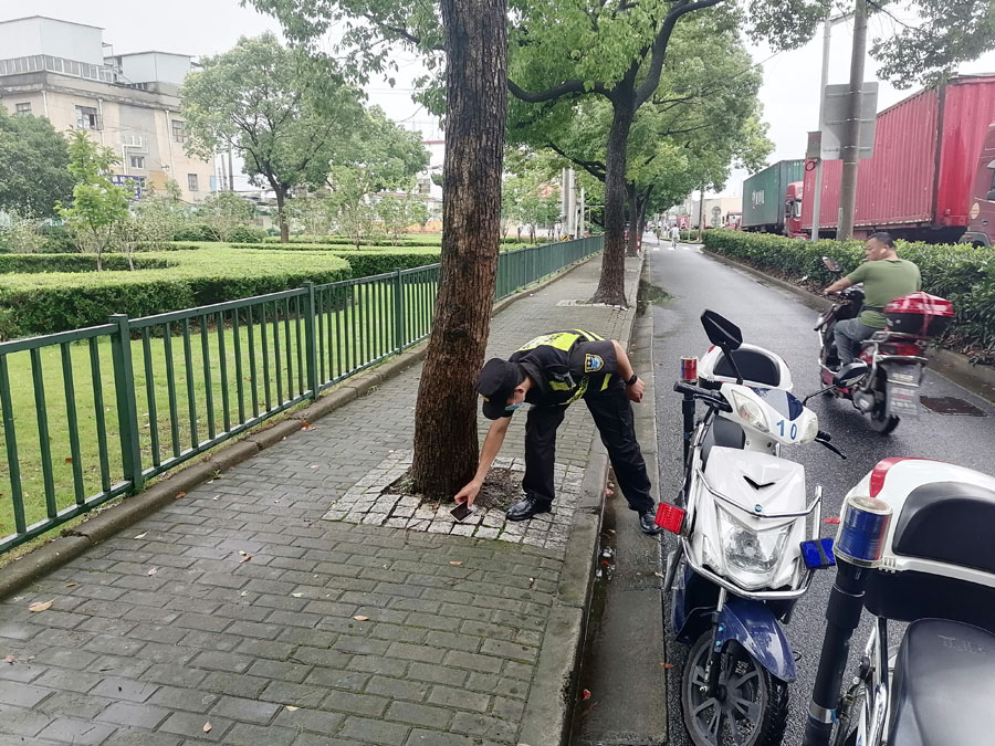 7月6日15:00,宗保公司駐高橋市容項目隊員黃盼強,巡邏至浦東北路清溪路交叉口時撿到一部手機,考慮到失主可能未走遠,黃盼強就把情況上報至當班負責人,得到指令原地等待。