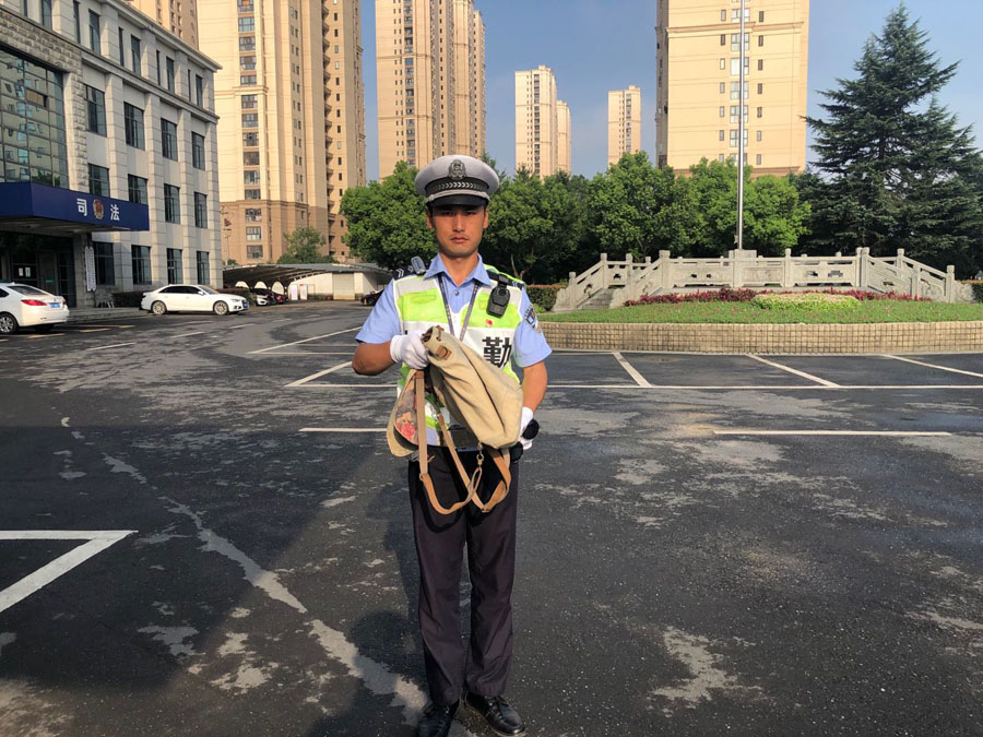 7月22日7:10,浙江民泰駐閑林交通輔警項目隊員張龍、李丹兩人在02省道閑富路北口站高峰崗執(zhí)勤時,發(fā)現(xiàn)一輛由西向東直行的電動車后座掉落一個米色背包。張龍趕緊呼叫車主,可是車主未能聽見,繼續(xù)向前行駛。