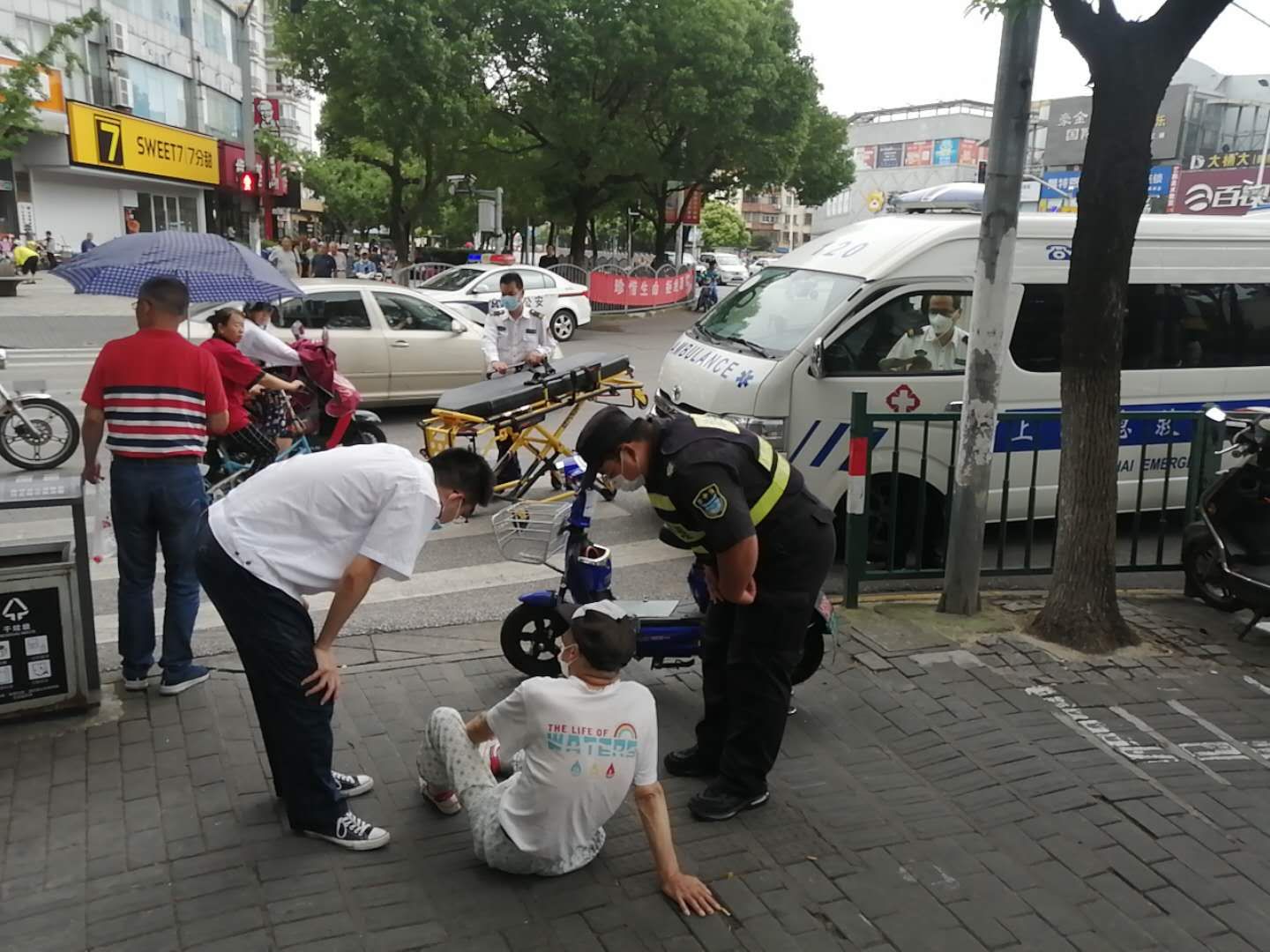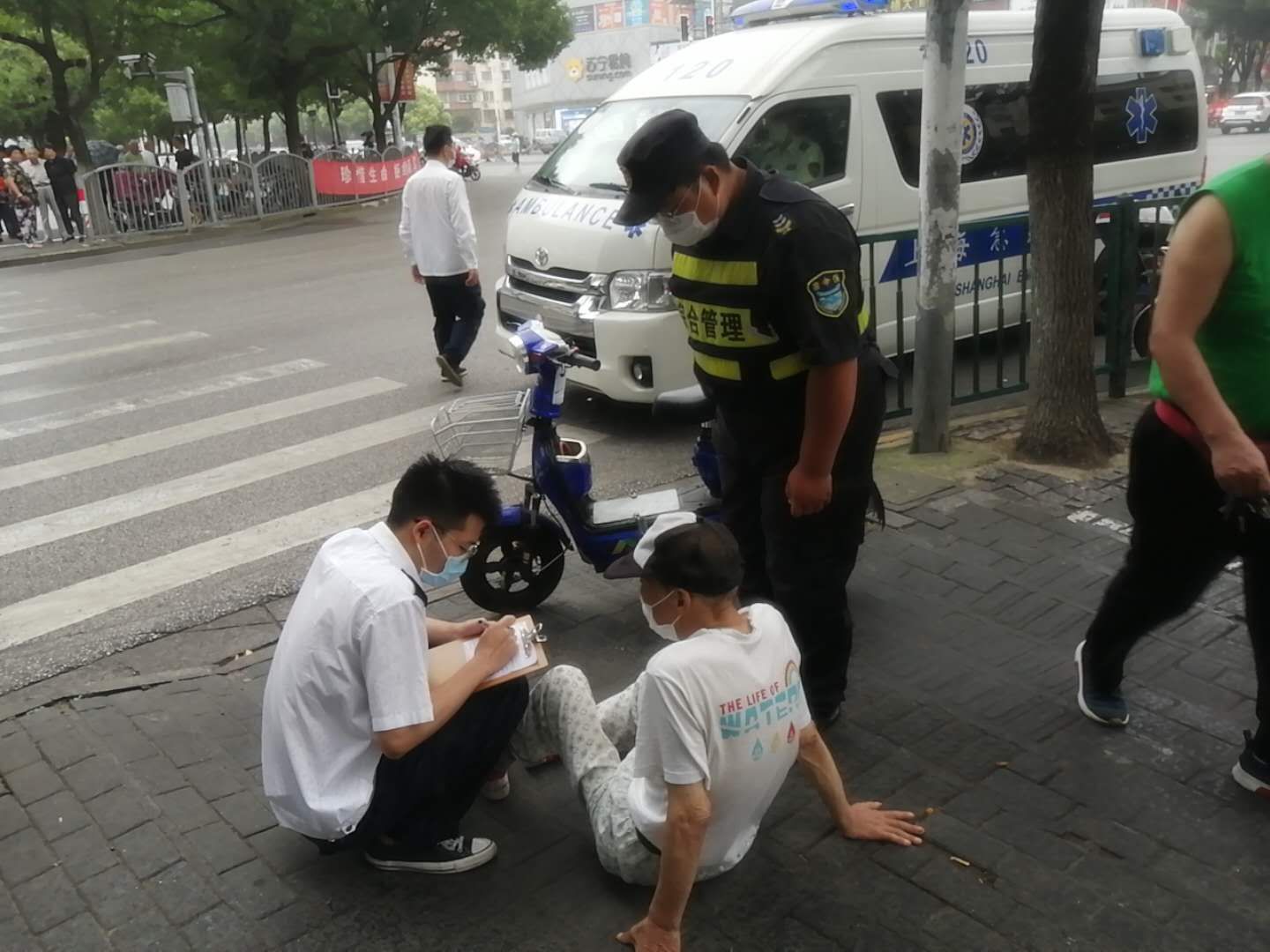 當(dāng)天15:40左右,鄭世豪和陳睿巡邏到張楊北路清溪路交叉口時(shí),看到一位老人坐在地上,一輛電瓶車倒在一旁。見(jiàn)此情景,鄭世豪和陳睿急忙跑向前,詢問(wèn)老人受傷情況。老大爺說(shuō)自己騎電瓶車避讓行人不小心摔倒了,腿上、胳膊上擦破點(diǎn)皮不要緊,就是覺(jué)得有點(diǎn)頭疼,感覺(jué)腦子有點(diǎn)迷糊。
