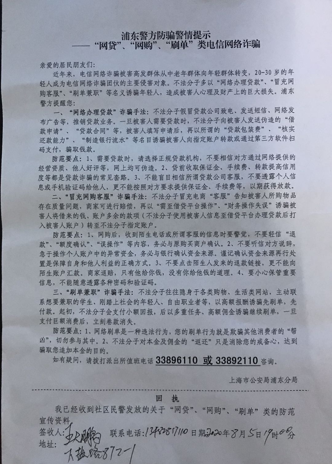 2020年8月5日上午,宗保公司惠南基地邀請(qǐng)所屬片區(qū)警署民樂(lè)派出所民警朱艷陽(yáng)到基地,對(duì)隊(duì)員們進(jìn)行以“網(wǎng)絡(luò)安全為人民,網(wǎng)絡(luò)安全靠人民”為主題的防網(wǎng)絡(luò)詐騙宣傳教育。