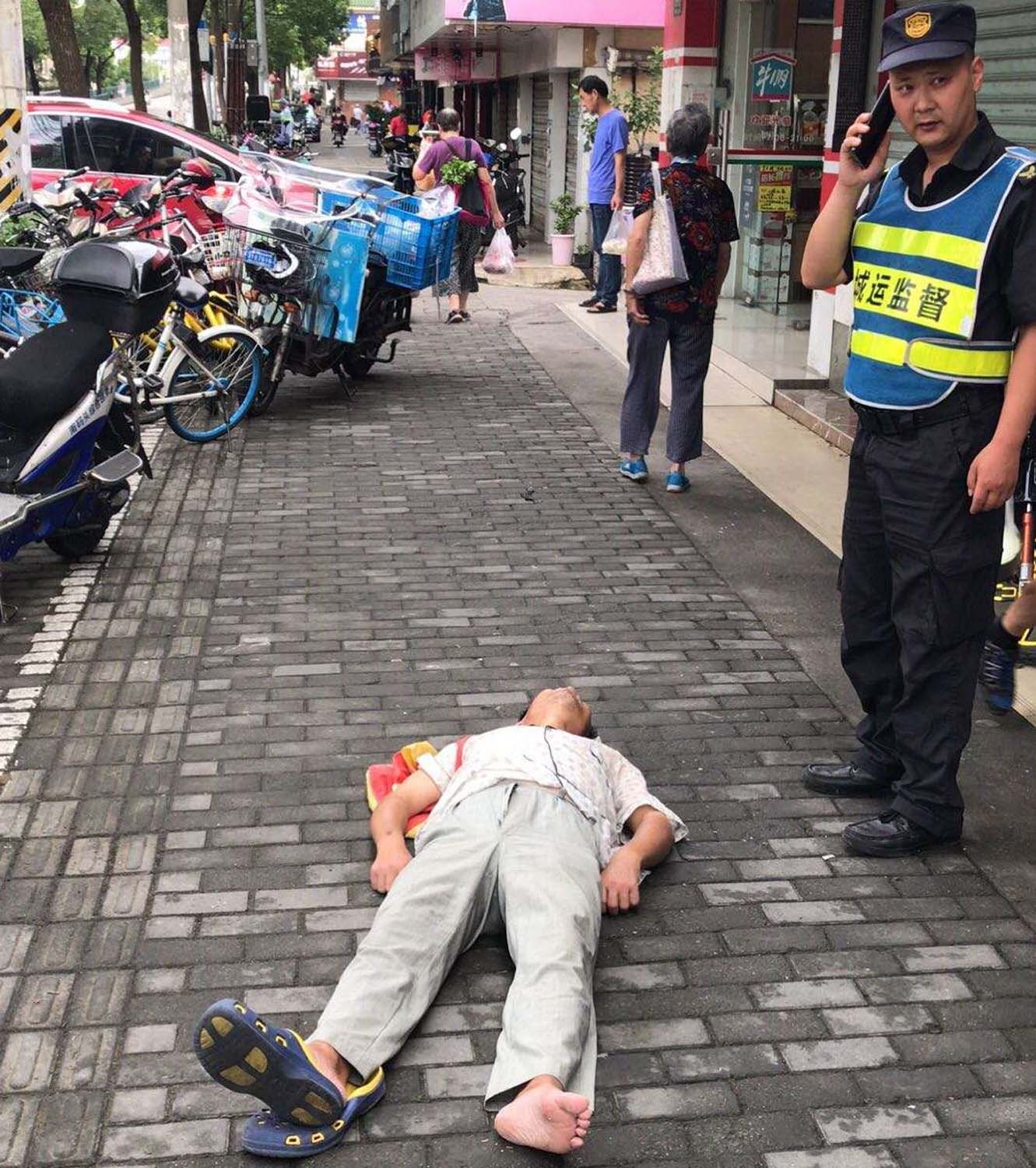 8月11日8點左右,小網(wǎng)格副組長劉昆和隊員宋文松進行網(wǎng)格巡查時,發(fā)現(xiàn)一位老人躺在路邊人行道上。