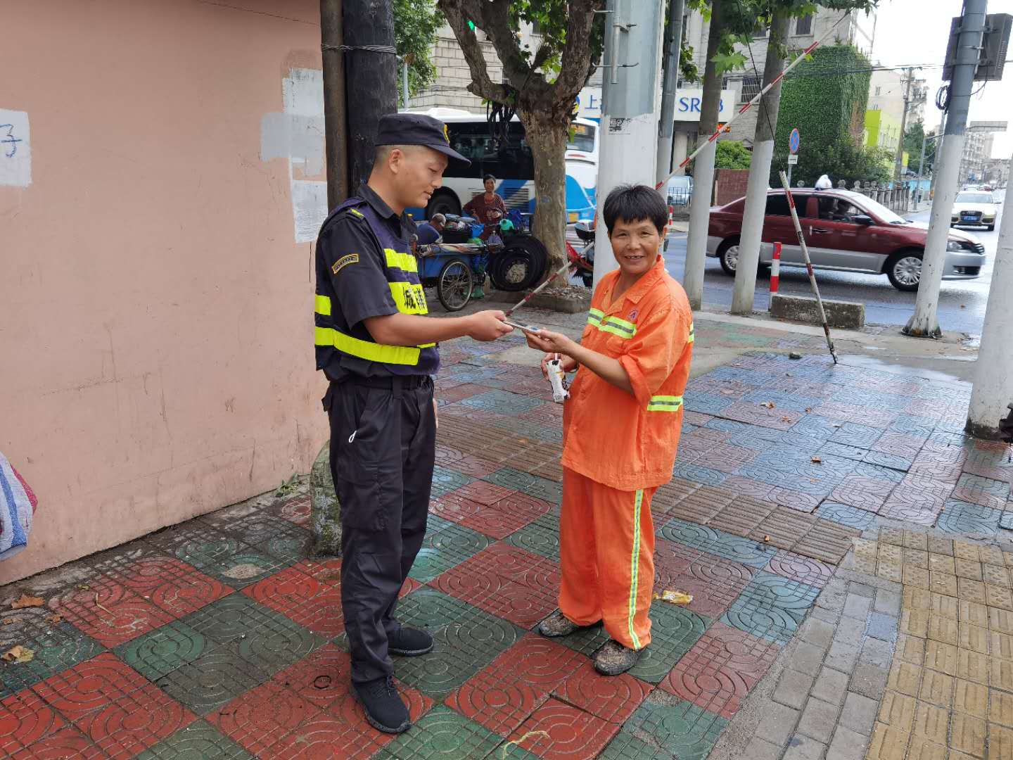 等了半小時左右,看到一名環(huán)衛(wèi)阿姨在路邊好像尋找什么,尹釗便走上前詢問,經(jīng)現(xiàn)場確認(rèn)核實,手機(jī)終于找到了自己的主人。