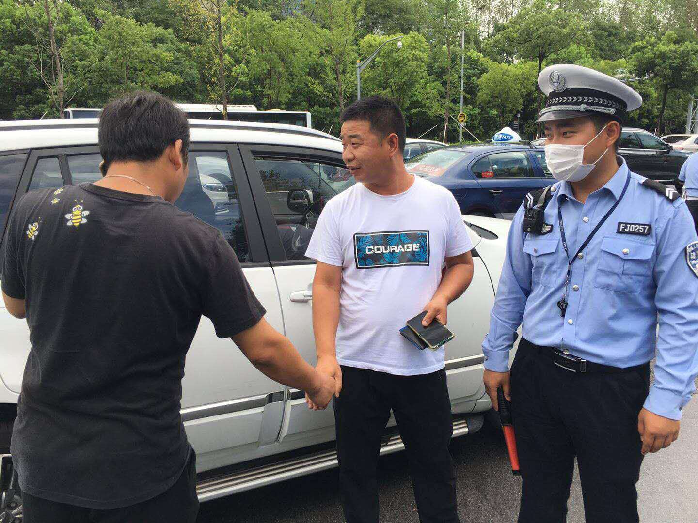 雙方車主對費明揚在事故期間的表現(xiàn)表示感謝,兩位車主握手,互相表示歉意。值班交警對費明揚的及時反應(yīng)和靈活處置的方式表示認(rèn)可。