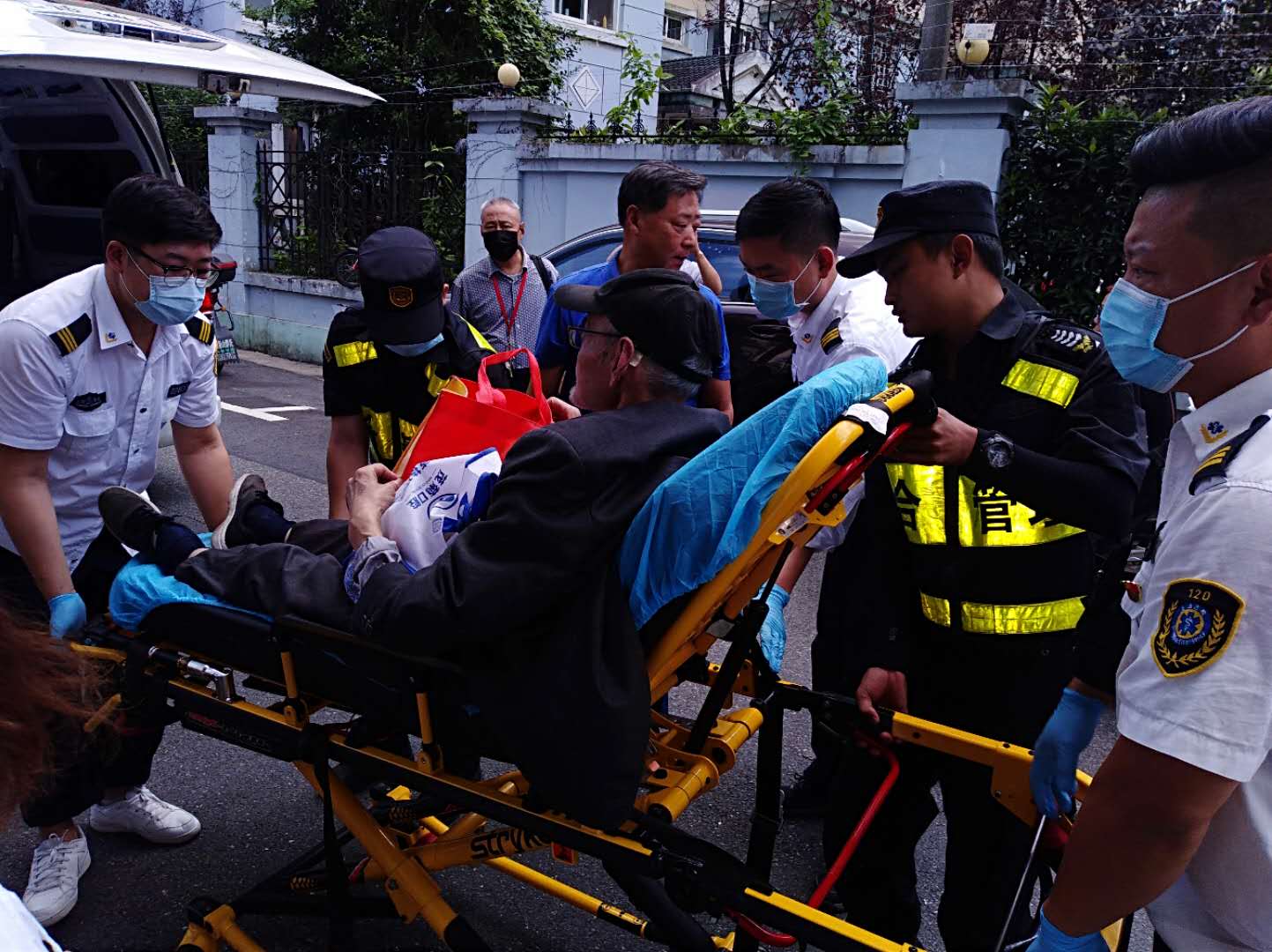 張銀在無法從老人含糊不清的敘述中了解老人家人的情況下,撥打了120救護車和派出所內部電話請求對老人進行救援。很快,120救護車趕到現場,兩名隊員幫醫(yī)護人員將暈倒老人抬上救護車,送往東方醫(yī)院南院進行救治。