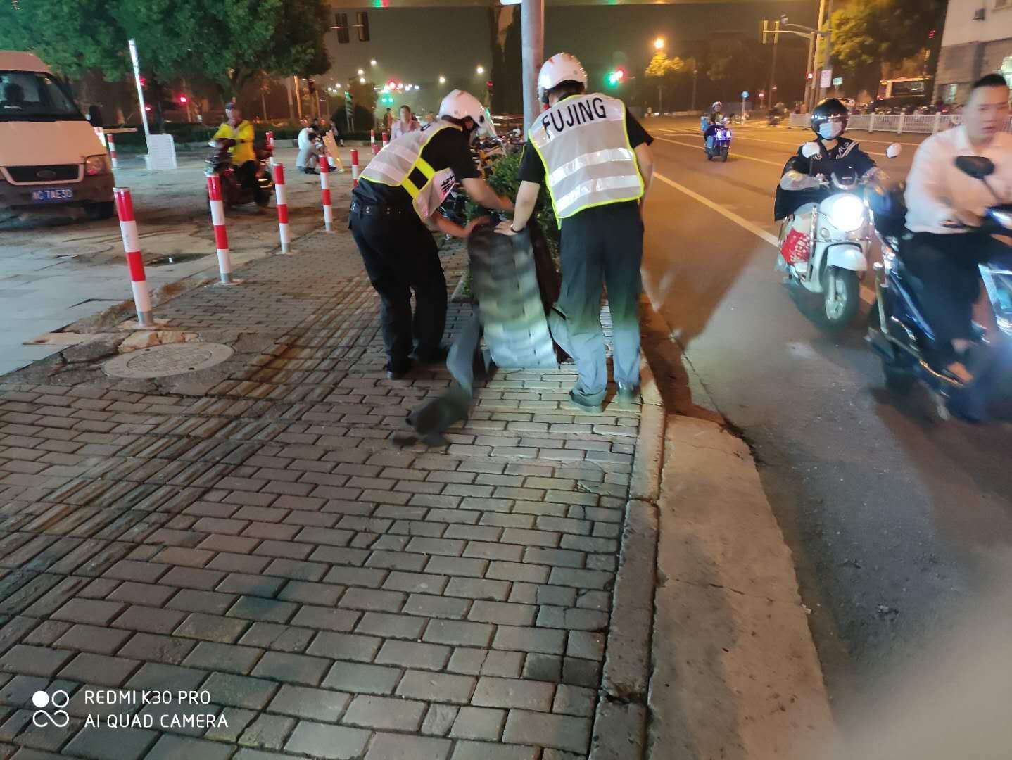 史李松、邵賓賓、王璐、劉夢龍等隊(duì)員見狀,立即上前一起將其挪移到馬路邊不影響交通通行的地方,并對路面進(jìn)行了清掃,此舉動(dòng)獲得了在場群眾的紛紛點(diǎn)贊。
