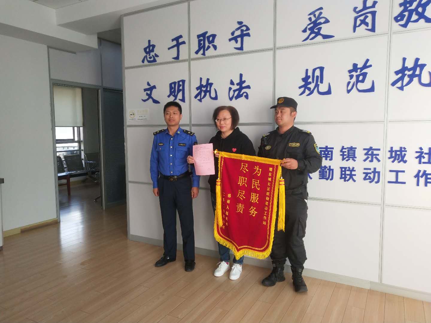 10月20日,一面繡有“為民服務(wù) 盡職盡責(zé)”的錦旗送到了宗保公司駐惠南鎮(zhèn)城管中隊(duì)項(xiàng)目隊(duì)員手中。