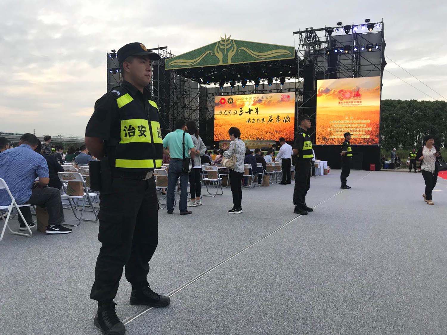 9月21日上午,第三屆“中國(guó)農(nóng)民豐收節(jié)”暨慶祝浦東“開發(fā)開放30周年,浦東農(nóng)民慶豐收”主題活動(dòng)在惠南鎮(zhèn)海沈村舉行,浦東新區(qū)農(nóng)委辦領(lǐng)導(dǎo)及惠南鎮(zhèn)黨委書記潘秀紅,鎮(zhèn)長(zhǎng)徐明寶出席活動(dòng),宗保公司負(fù)責(zé)活動(dòng)現(xiàn)場(chǎng)安保工作。