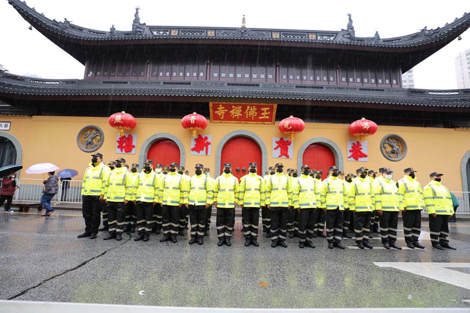 疫情防控初期,在各級政府的統(tǒng)一協(xié)調(diào)部署下,公司主要配合做好勸離寺廟(庵)香客,保障居家隔離、集中隔離點隔離,核查餐飲店、娛樂場所、人員密集場所等落實關(guān)閉要求情況,查處活禽出售、進菜場人員體溫檢測,疫區(qū)來滬人員賓館出租房排查,車輛盤查、隔離人員接送、疫情防控知識宣傳,機場航站樓秩序、藥房門口排隊維護秩序、開展疫情防控志愿活動等17類疫情防控輔助工作。