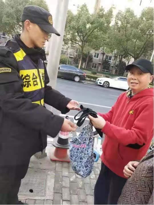 12月5日,宗保公司駐三林市容項目隊員李三沅撿到包歸還失主,受到好評。