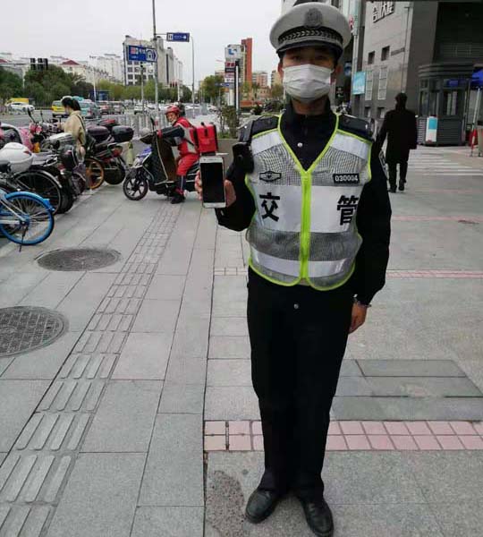 輔警巡邏撿手機(jī) 物歸原主品行高—虹橋交管輔警項目隊員撿到手機(jī)