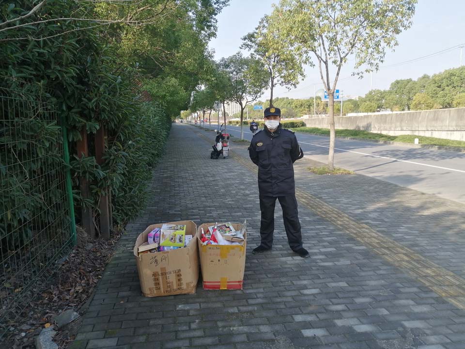 當(dāng)天9:00,張晶晶在拱極東路學(xué)海路巡邏時,發(fā)現(xiàn)人行道上有兩箱包裝完好的玩具,預(yù)估價值在500元左右。想著失主可能會回來尋找,張晶晶便守在原地。