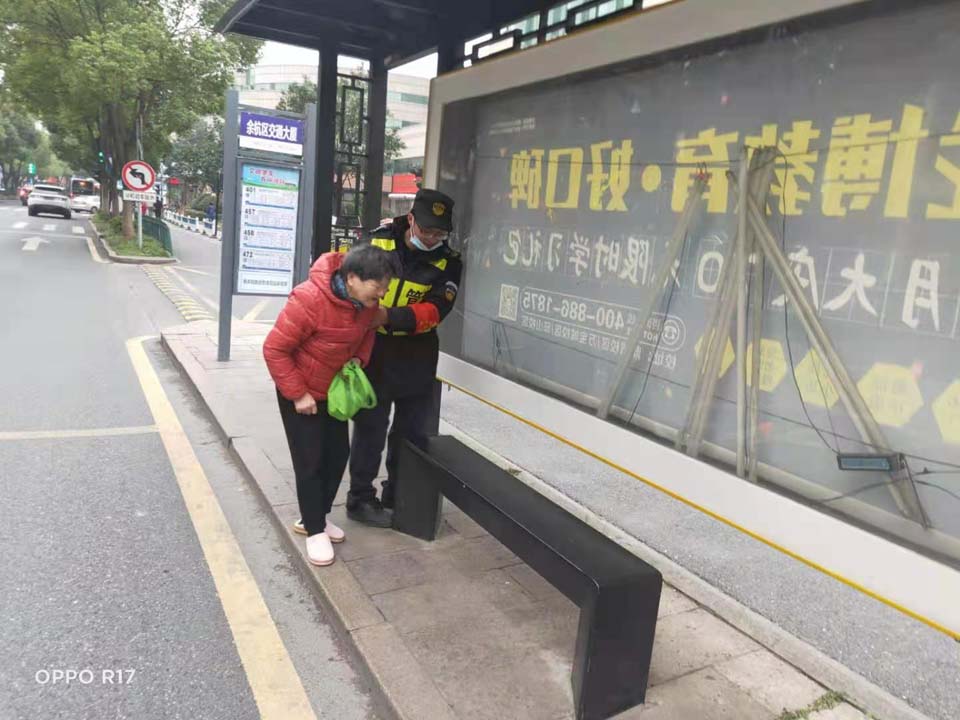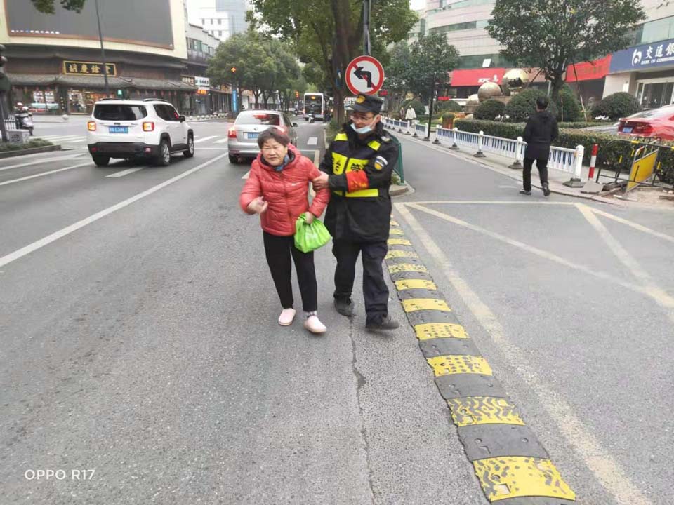 當(dāng)日15:22,余威在邱山大街和北大街交叉口胡慶余堂值勤時(shí),發(fā)現(xiàn)一位老奶奶邁著小碎步捂著肚子,艱難地行走著。余威立即上前扶住老奶奶,經(jīng)詢問得知,老奶奶去銀行領(lǐng)完養(yǎng)老金準(zhǔn)備回家,可走著走著突然覺得沒有力氣了。